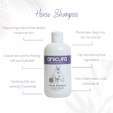 Anicura Horse Shampoo is a high-quality natural pet shampoo, filled to the brim with plant oils and extracts. Suitable for all skin types, this gentle, natural Shampoo soothes skin prone to sensitivity, dryness, sweet itch, eczema, dermatitis, mud fever, rain scald, seborrhoea (dandruff), skin allergies and other skin irritations.
